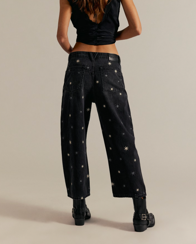 A forever favorite with a playful twist — these star-stitch jeans bring just the right amount of attitude to your everyday rotation. Designed with a relaxed, low-slung fit and an easy barrel leg, they give that effortless “borrowed-from-the-boys” vibe while still feeling intentionally styled. Made from premium rigid denim that only gets better with time.