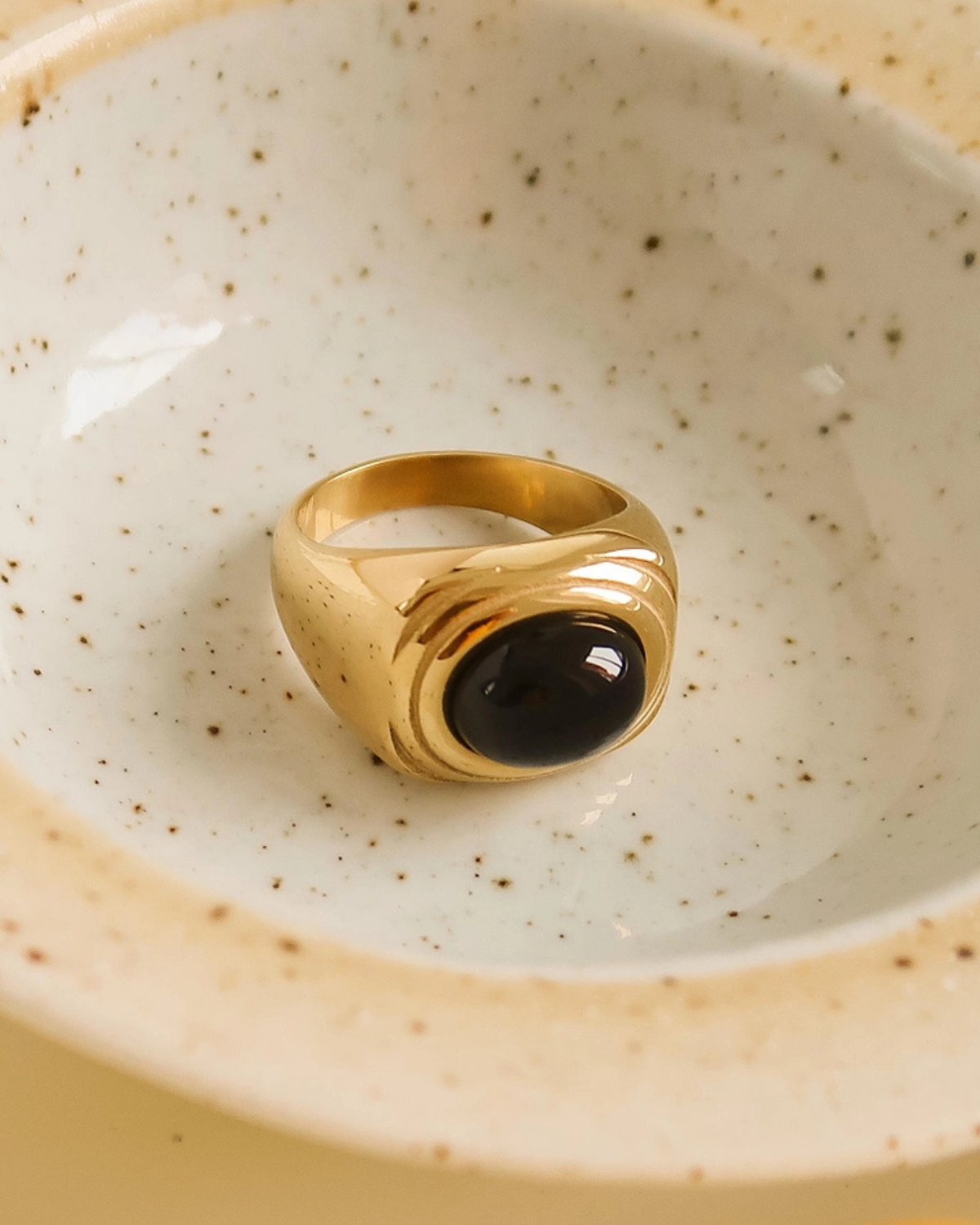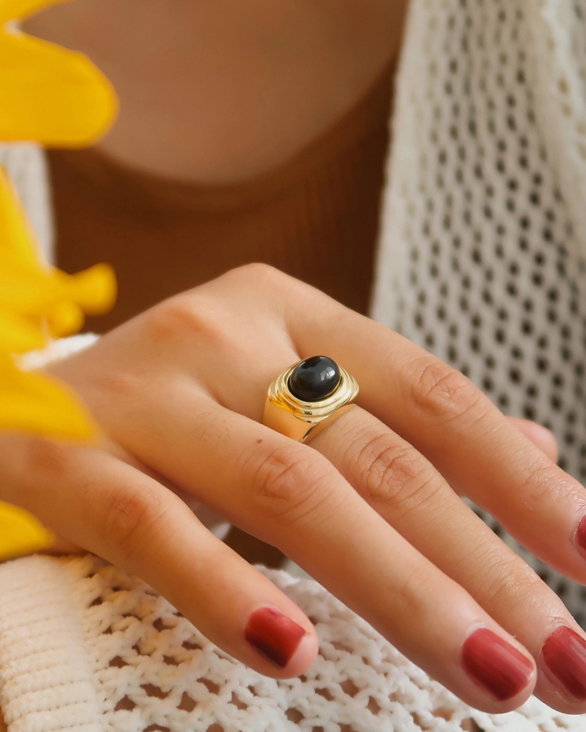 Add Christophe 18K Gold Vintage Black Agate Stone Ring to the cart