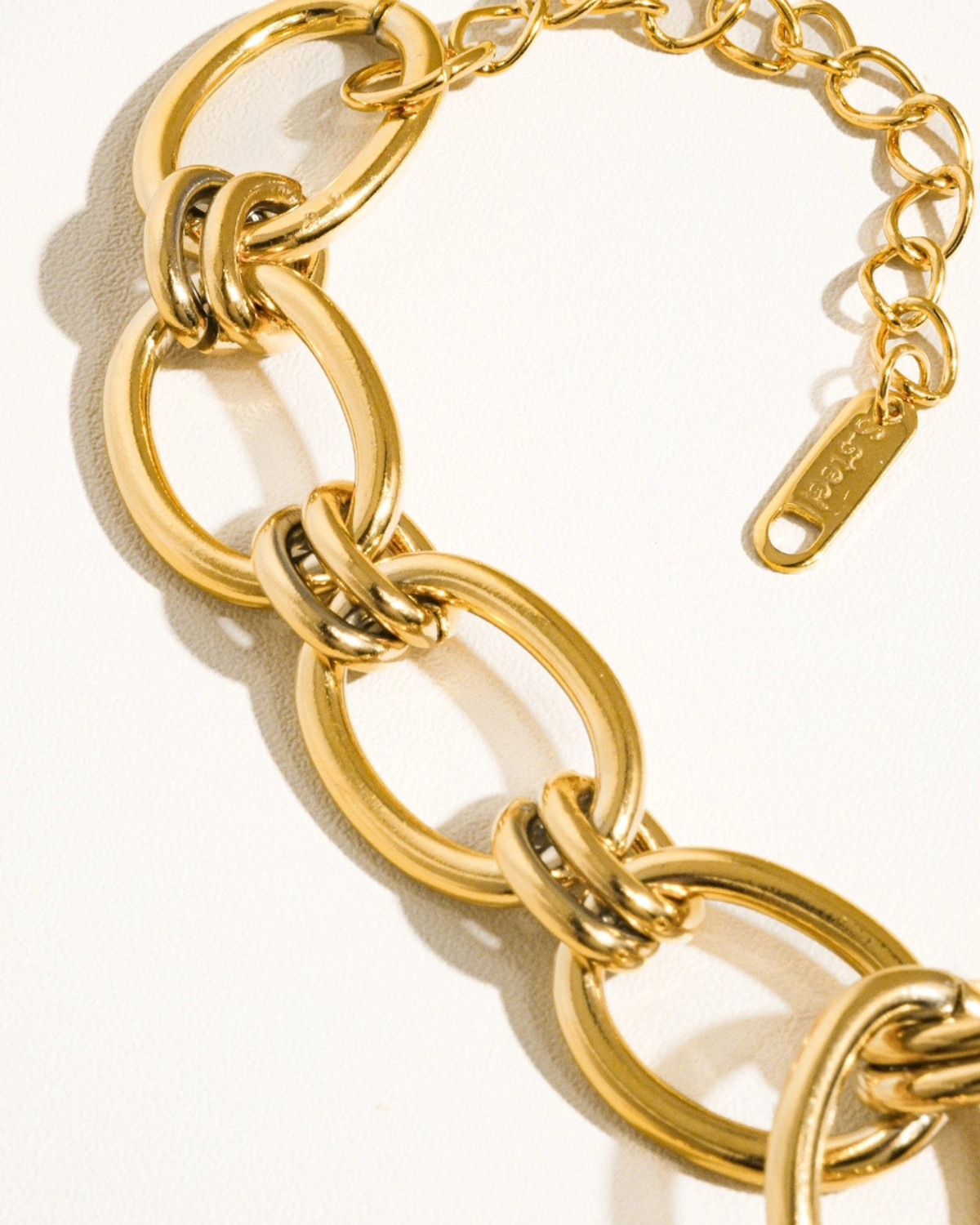 Elevate your everyday style with the Tila Bracelet—a timeless staple designed for effortless sophistication. Crafted in durable stainless steel and finished with a luxurious 18K gold plating, this bold chain bracelet is made to shine without the worry of tarnishing or fading.