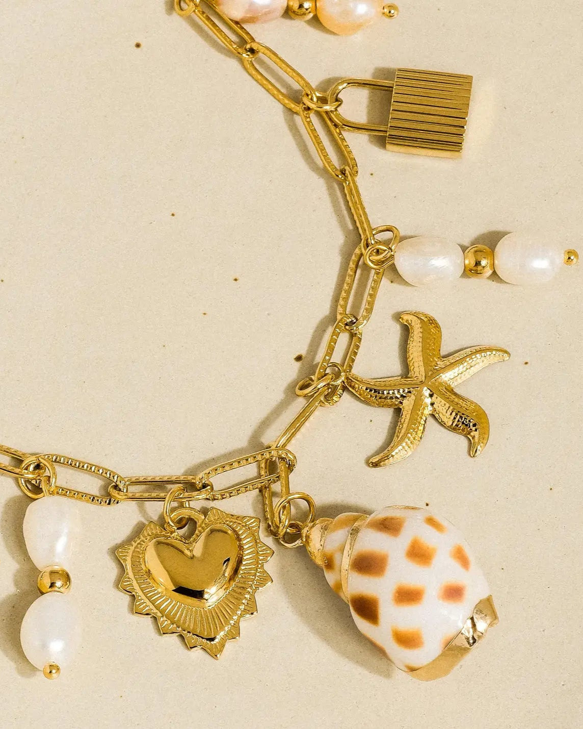 Ophelie 18k Gold Non-Tarnish Shell & Pearl Charm Necklace