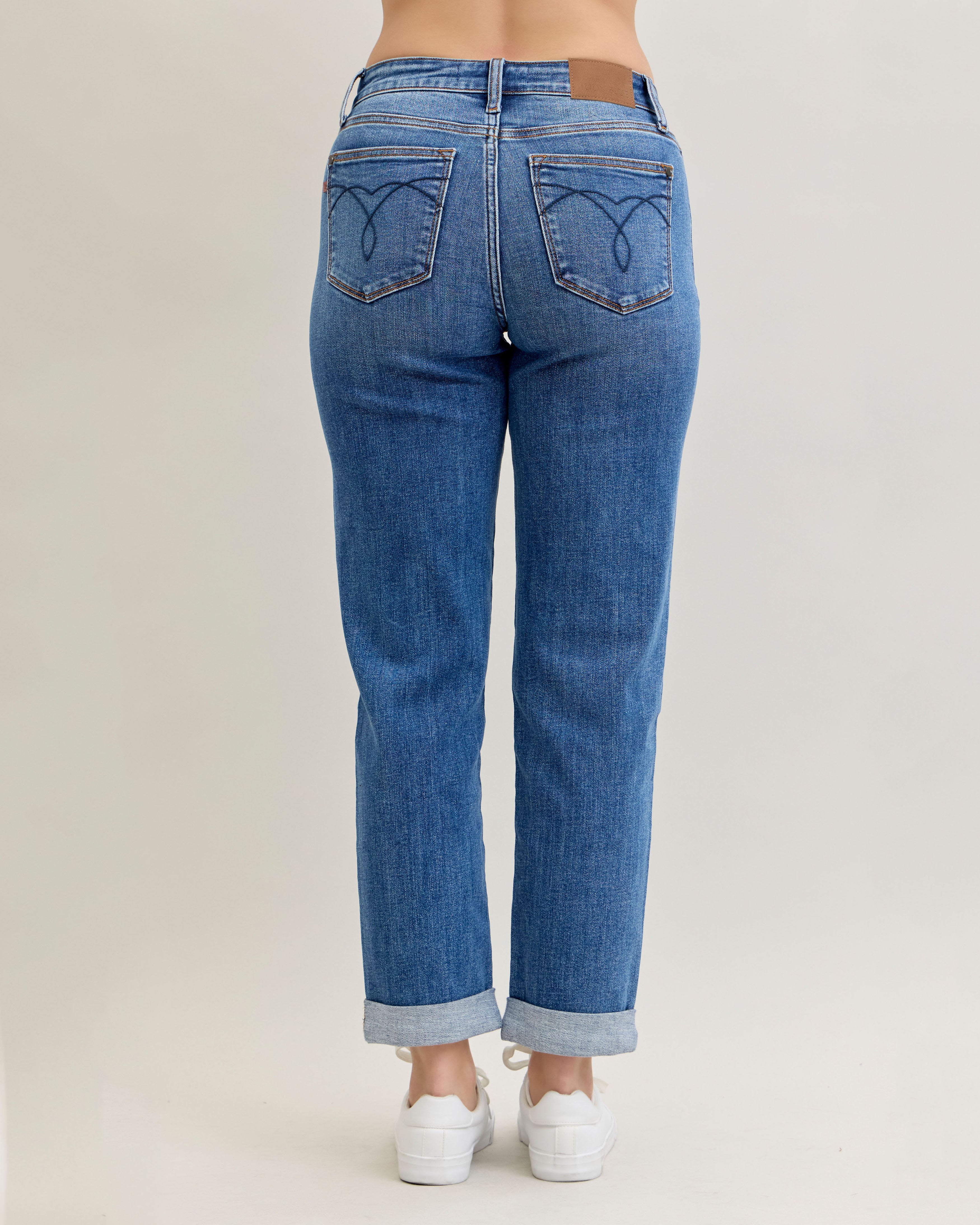 Mid Rise Boyfriend Classic Cuffed Jeans by Judy Blue