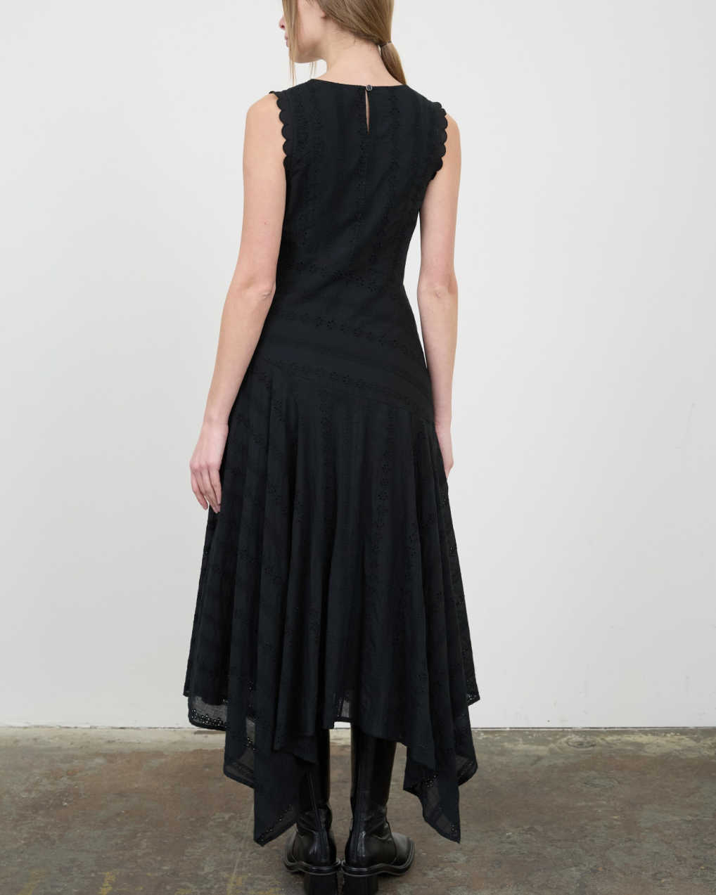 Eyelet Detail V-Neck Midi Dress