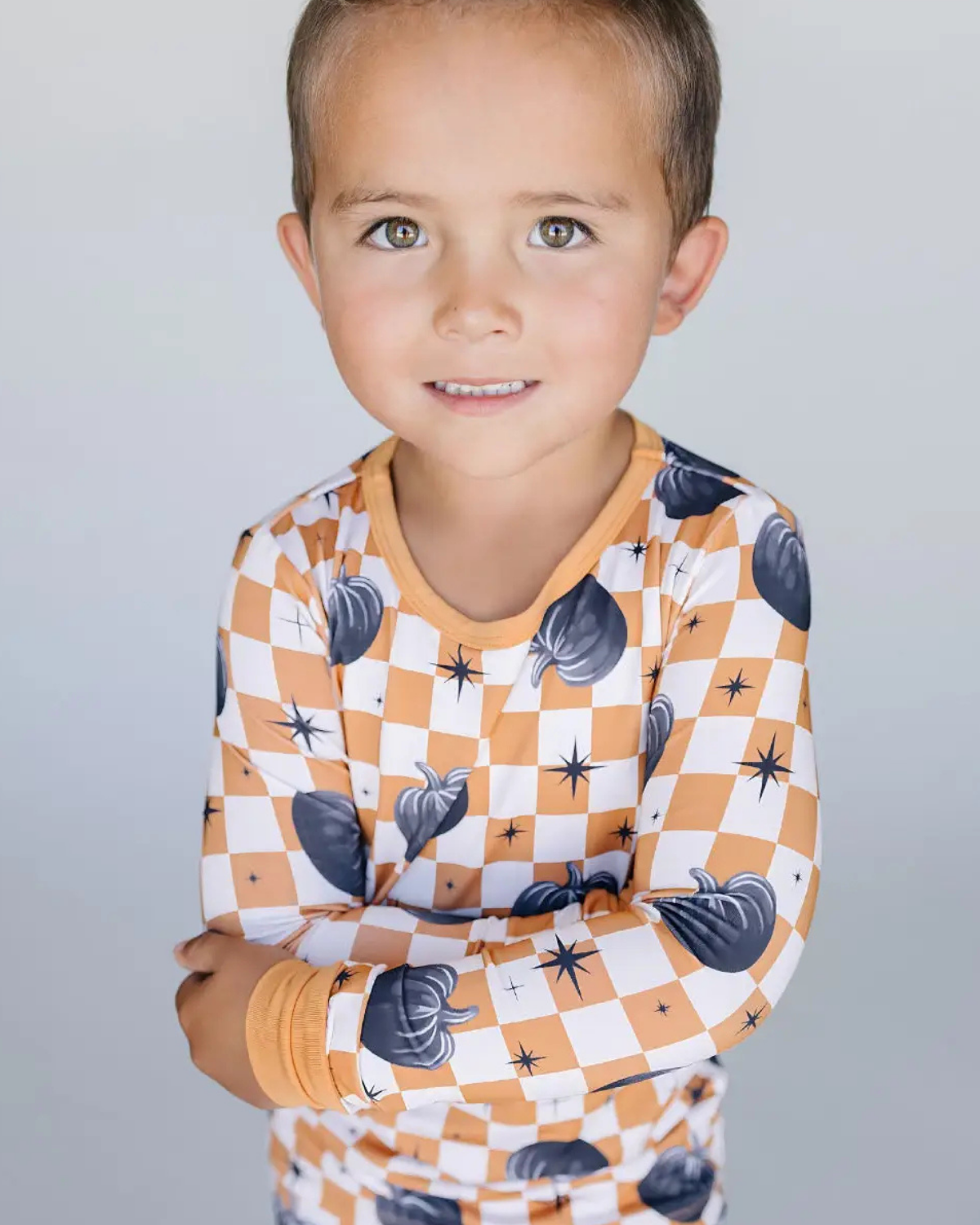 Checkered Pumpkin Bamboo Two Piece Pajamas