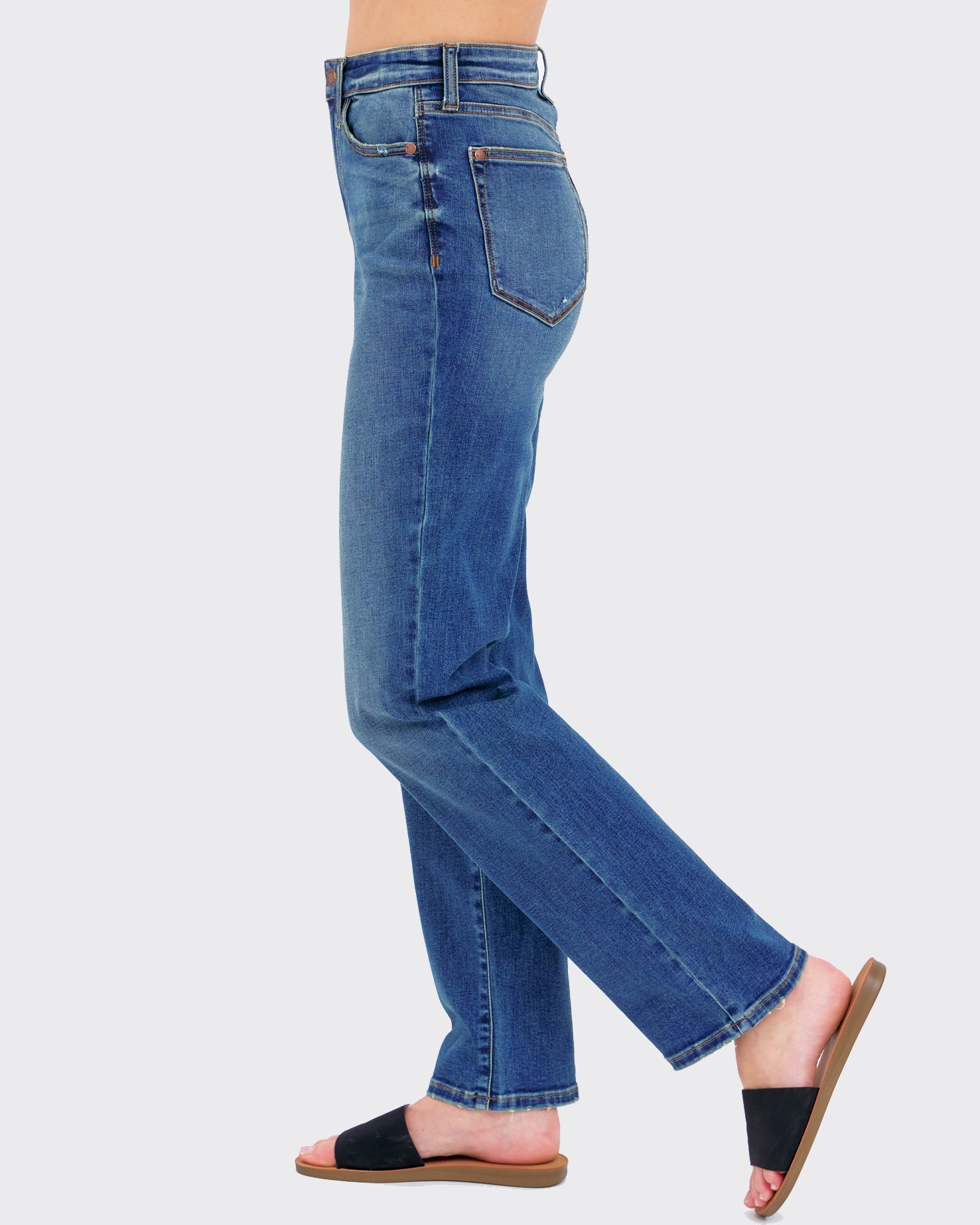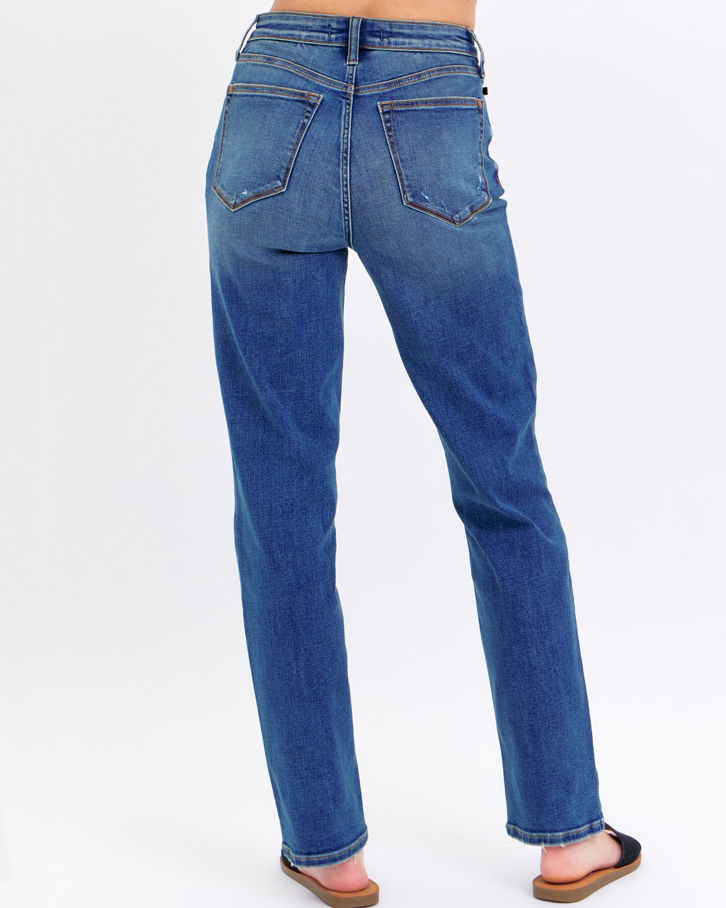 Our best-selling Judy Blue denim is back — and better than ever. The High Waist Straight Fit is the ultimate everyday jean with a soft, stretchy feel and flattering, relaxed silhouette. Designed with a timeless straight leg and just the right amount of structure, these jeans move with you while holding their shape wear after wear. A clean medium wash and subtle whiskering make them an easy choice for dressing up or keeping it casual — a true ISH favorite restocked for good reason.